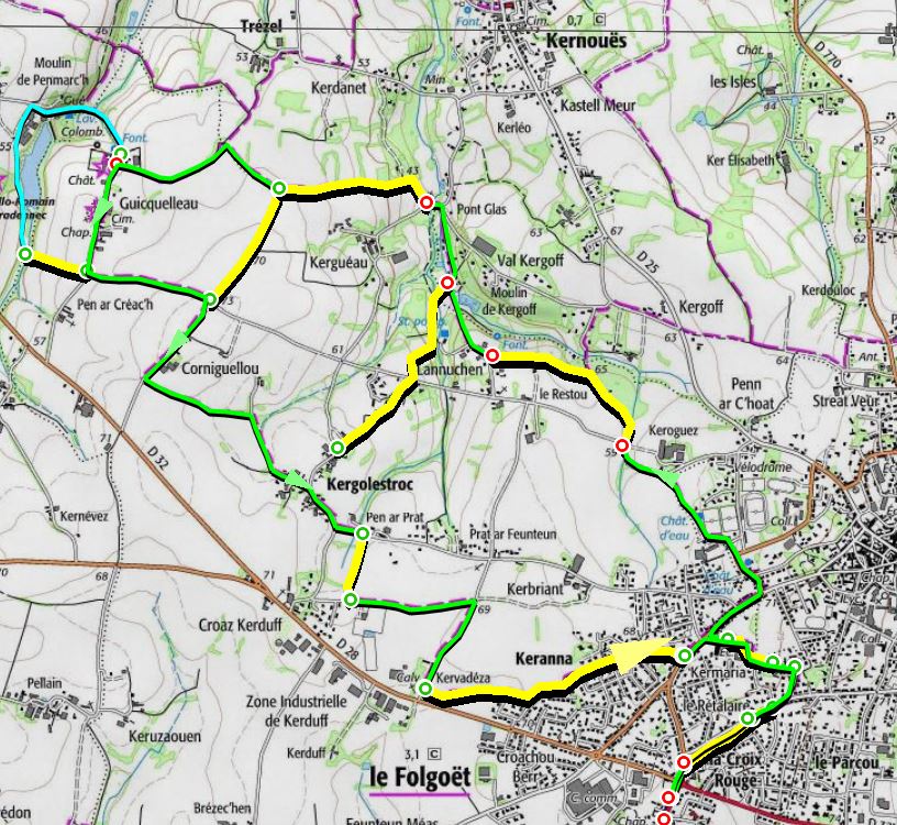• Le tracé "jaune" représente les parties où Chemins Faisant intervient.